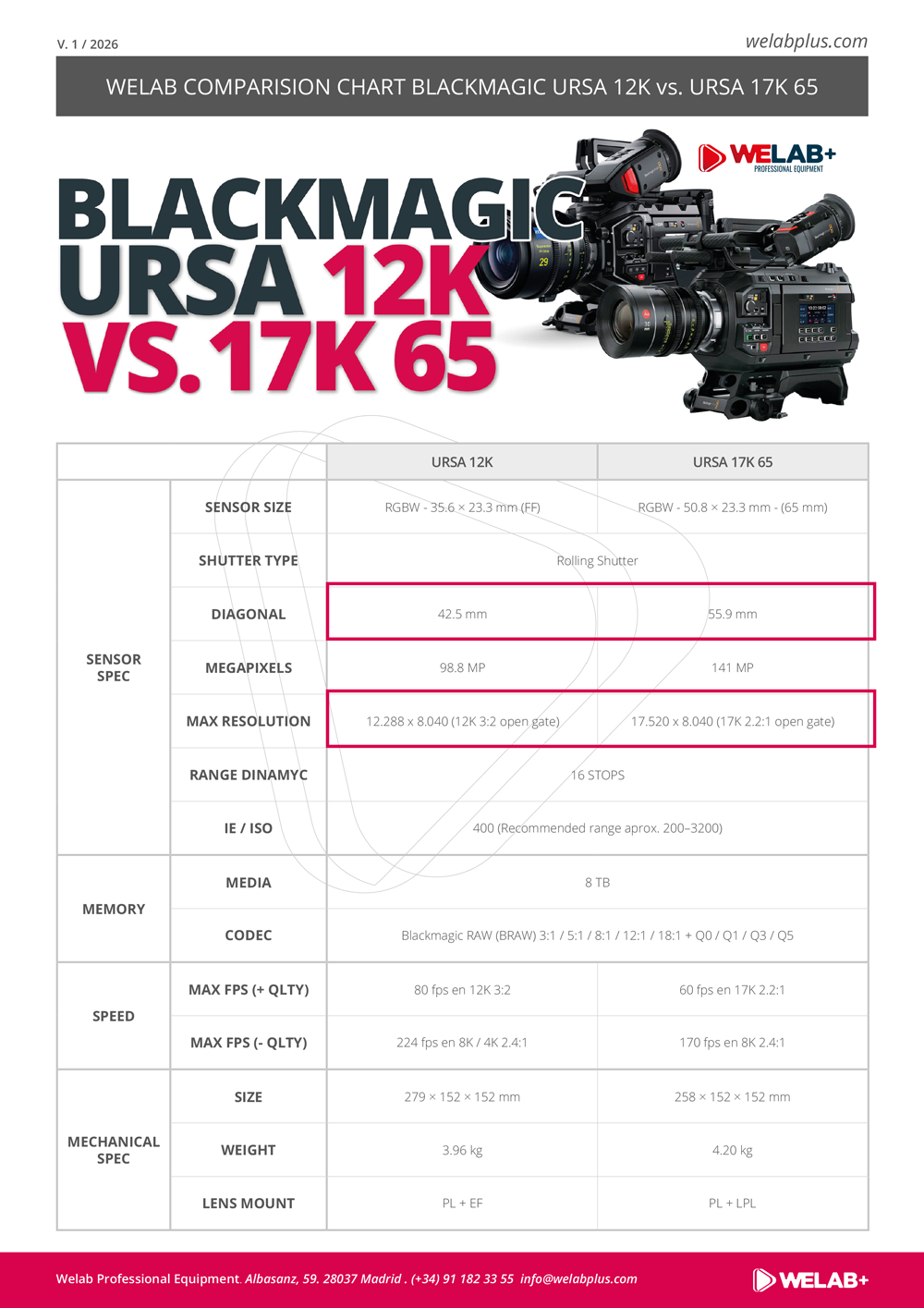 BLACKMAGIC URSA 12K vs. URSA 17K 65