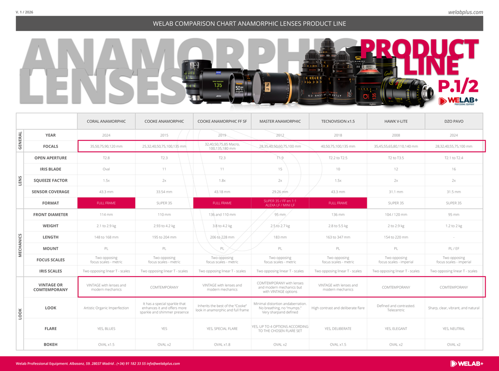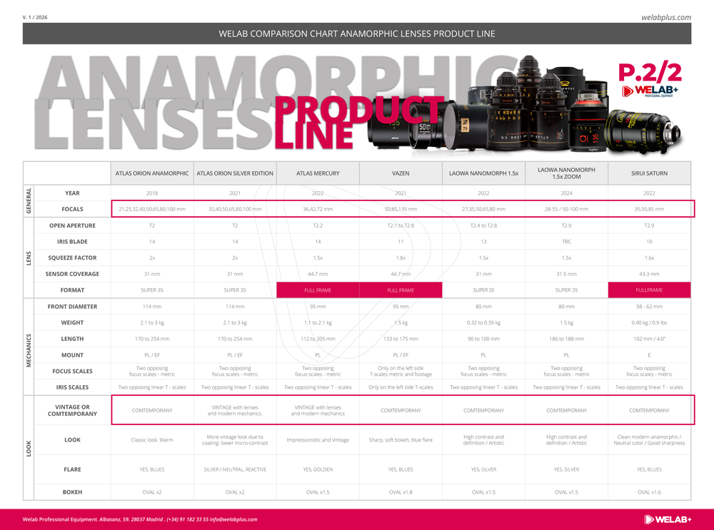 Si quieres conocer las lentes anamórficas que tenemos disponibles en Welab, os dejamos la comparativa Anamorphic Lenses Product Line. Se trata de una selección de los mejores artículos para que descubras cada producto a fondo.