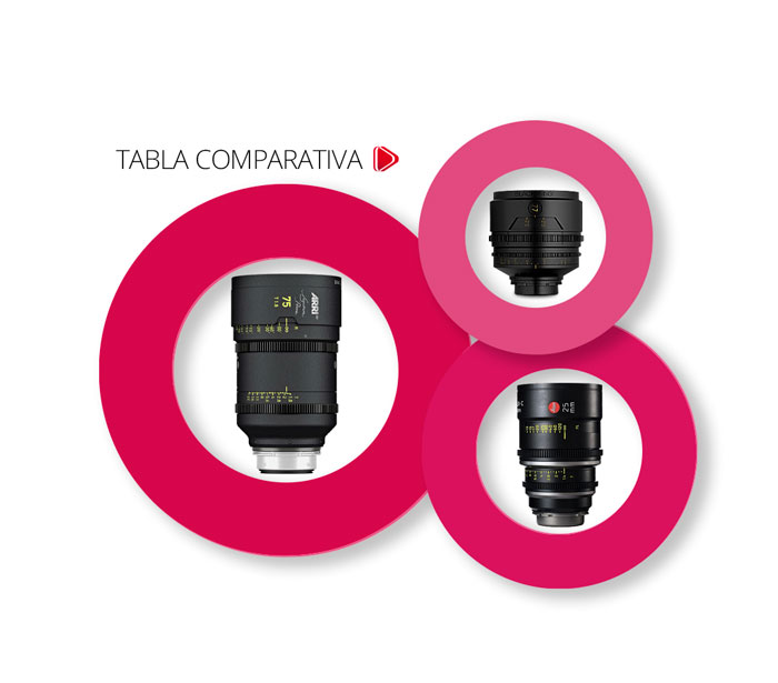 Nuestra propuesta se basa en un set de 5 lentes con el sabor vintage de los años 60 del siglo pasado: un 20, 28, 40, 50 y 75 mm. De los cuales el 20 mm es un Cinegon o lente gran angular de retroenfoque. El resto son lentes Cine-Xenon que Schnneider fabricó en colaboración con ARRI, alojando sus lentes en las carcasas Arriflex de ARRI con monturas de la misma compañía.