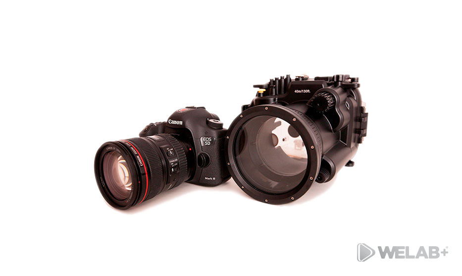 Este pack de grabación es justo lo que necesitas para realizar grabaciones submarinas (hasta 40 metros de profundidad) con la popular DSLR Canon 5D Mark III. En este caso el objetivo más indicado para usar con la carcasa es el Canon Zoom EF 24-105mm f/4 L IS USM. Sin embargo no es recomendable usarlo por debajo de 35mm de distancia focal.