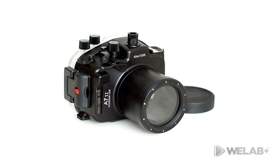 El KIT GRABACIÓN SUBACUÁTICA SONY A7SII se trata de una carcasa sumergible para grabar vídeo y hacer fotografías con la Sony A7SII (consultar objetivos compatibles al equipo comercial de Welab). Dispone de botones para controlar todas las funciones de la cámara bajo el agua. También tiene un avisador acústico y luminoso en caso de filtración de agua.
