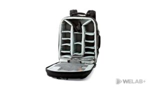 - Compartimiento principal acolchado con divisores extraíbles y ajustables para una protección extra y personalizar el interior para adaptarlo a nuestro equipo fotográfico.